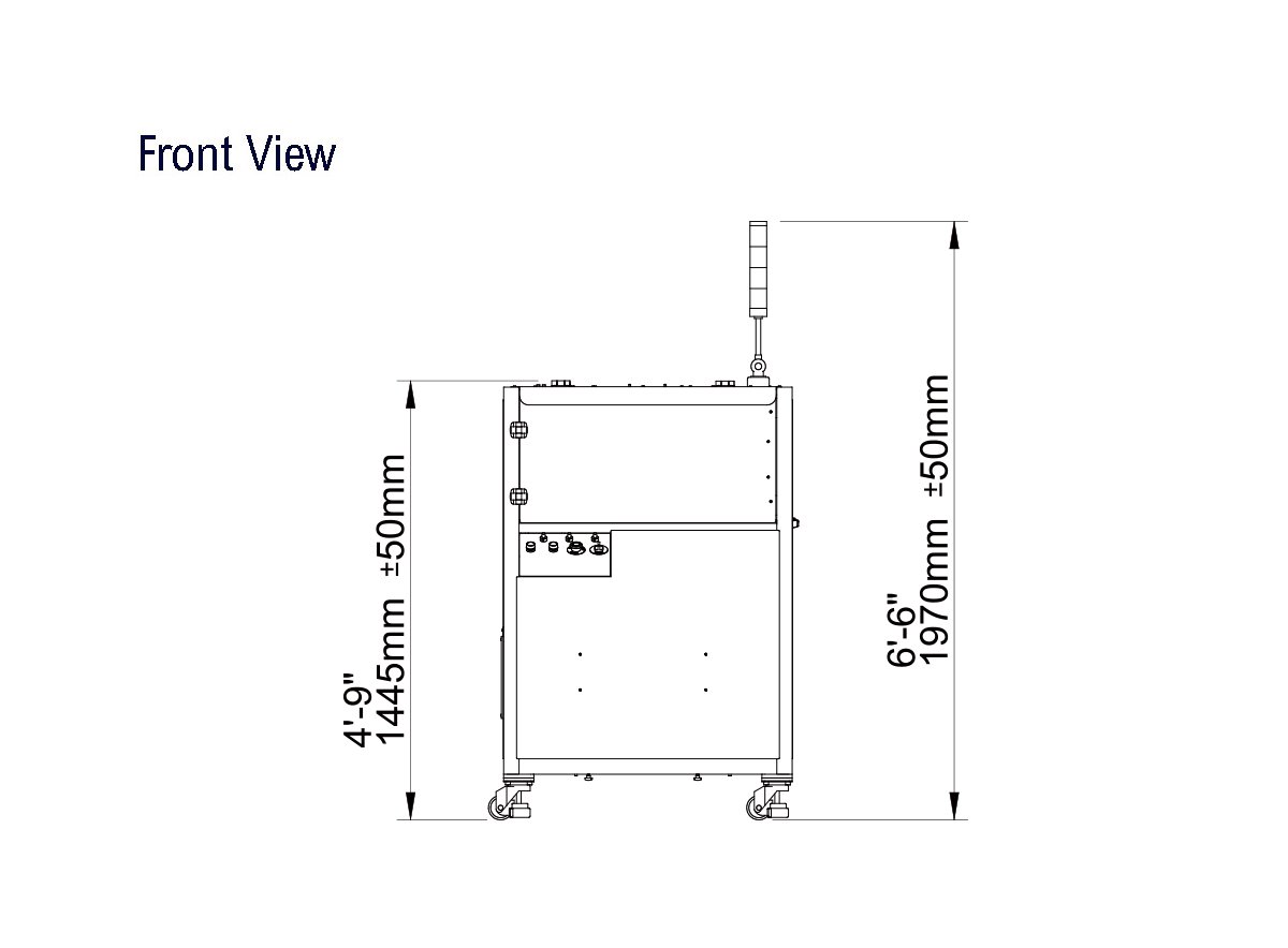 The dimensions shown are for standard machine. The conveyor can be extended: the length may var y based on selected options. This machine can run independently or be integrated into an automated packaging line. All CVC equipment is covered by a one-year parts warranty. Full Warranty details are included in our equipment proposals or can be found on our website.