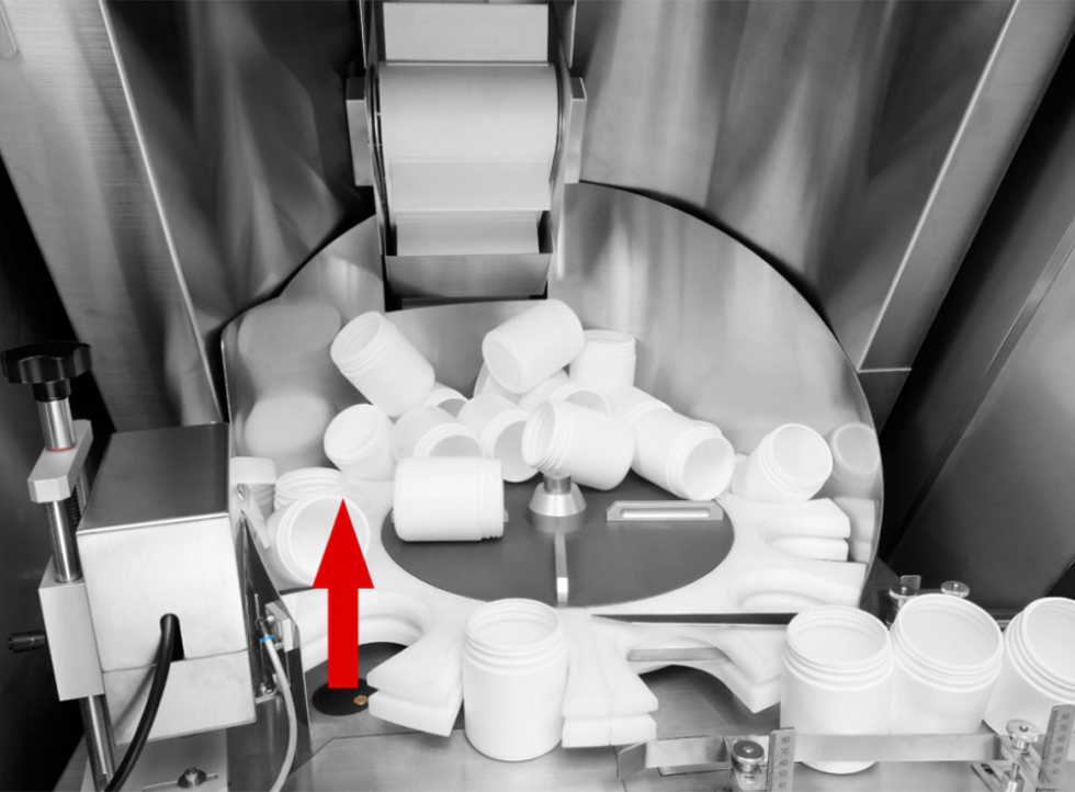 Bottle Orientation: Use a air blowing device to eject the upside down bottle back to the starwheel sorter for further sorting.