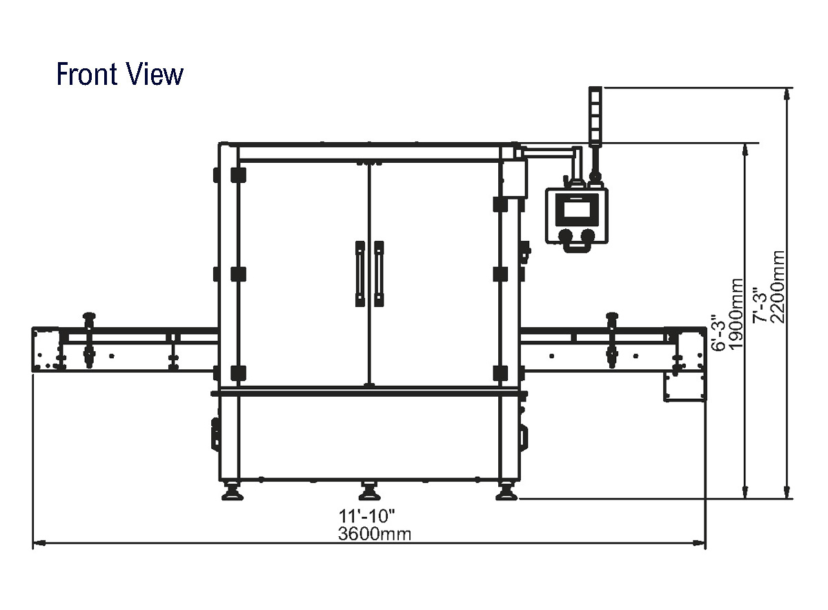 The dimensions shown are for standard machine. The conveyor can be extended: the length may var y based on selected options. This machine can run independently or be integrated into an automated packaging line. All CVC equipment is covered by a one-year parts warranty. Full Warranty details are included in our equipment proposals or can be found on our website.