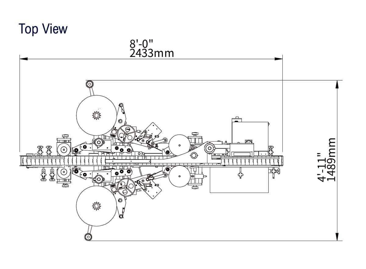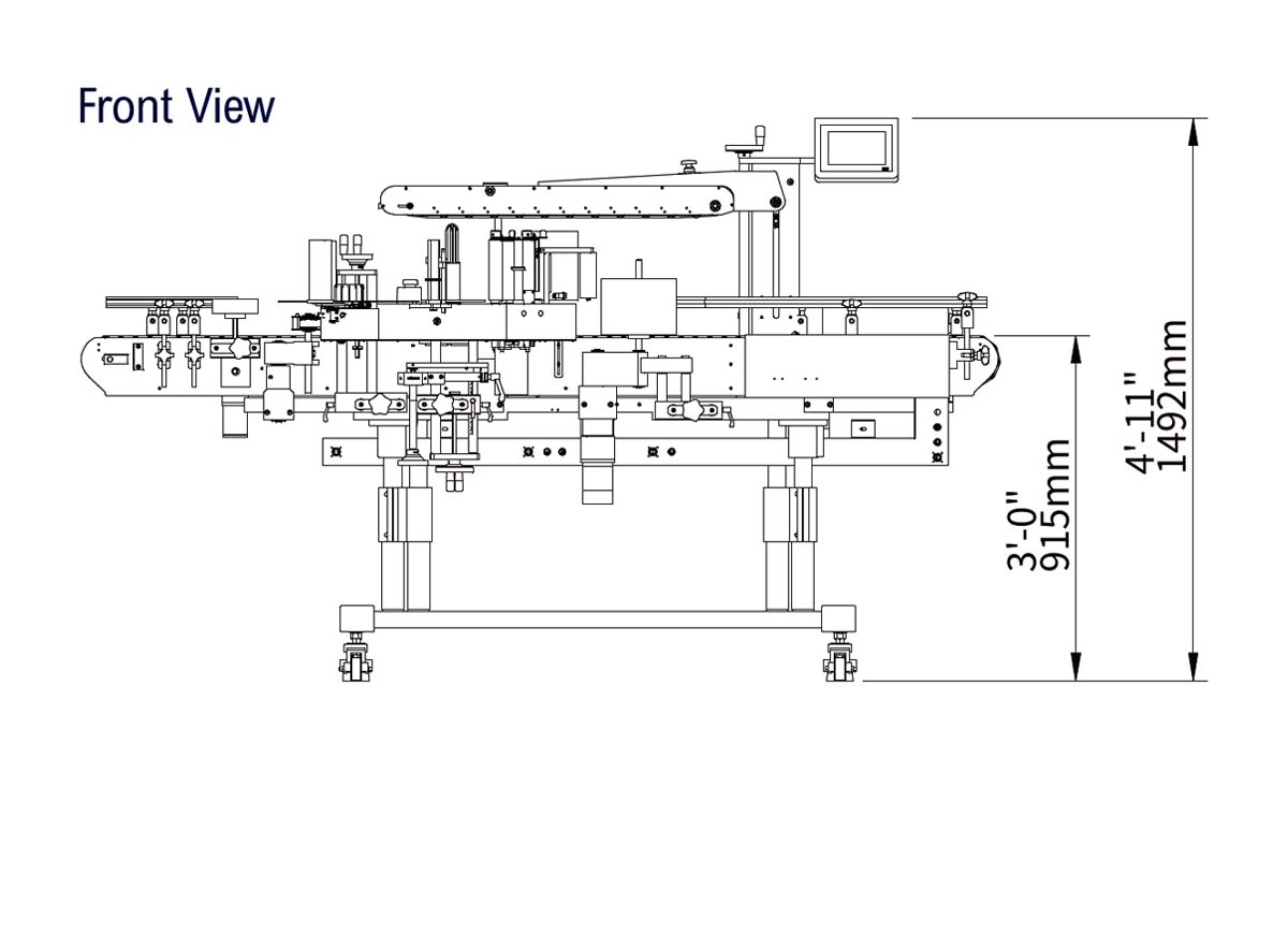 The dimensions shown are for standard machine. The conveyor can be extended: the length may vary based on selected options. This machine can run independently or be integrated into an automated packaging line. All CVC equipment is covered by a one-year parts warranty. Full Warranty details are included in our equipment proposals or can be found on our website.