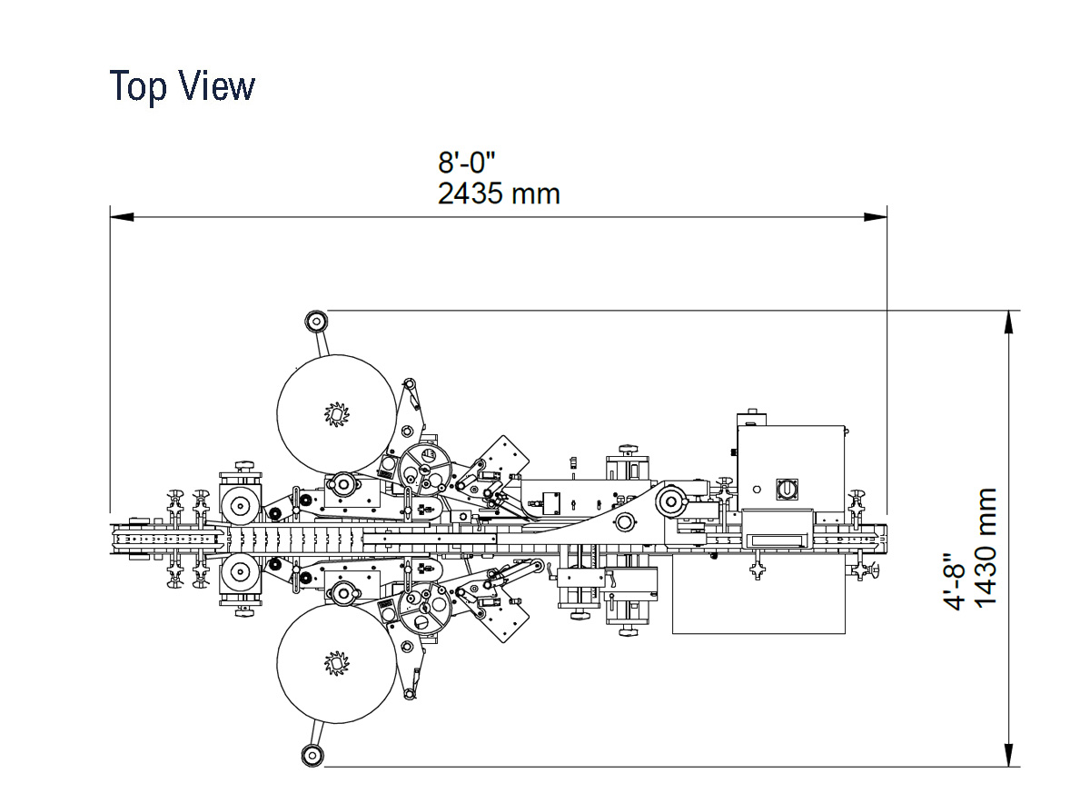 The dimensions shown are for standard machine. The conveyor can be extended: the length may var y based on selected options. This machine can run independently or be integrated into an automated packaging line. All CVC equipment is covered by a one-year parts warranty. Full Warranty details are included in our equipment proposals or can be found on our website.