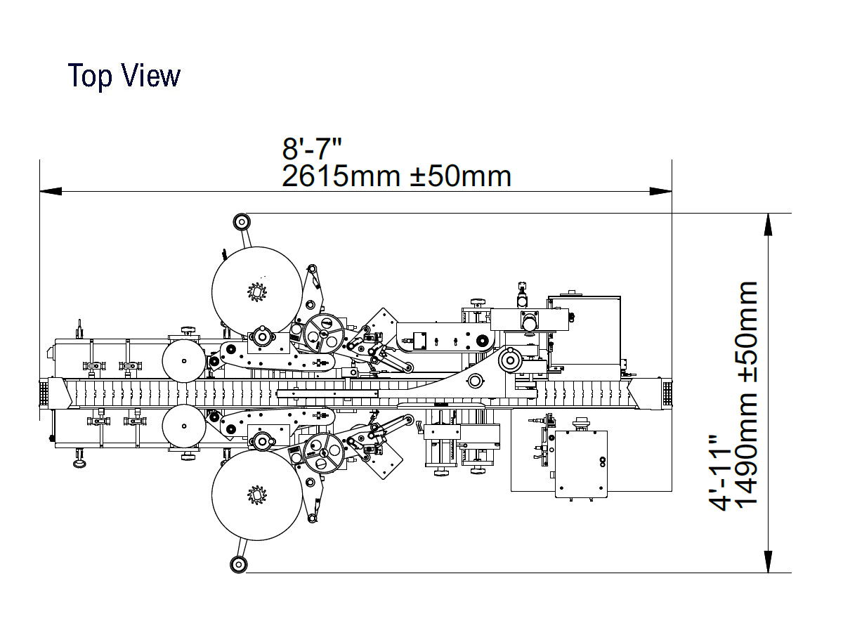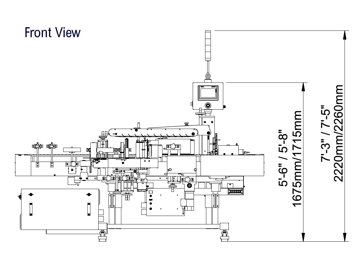 The dimensions shown are for standard machine. The conveyor can be extended: the length may var y based on selected options. This machine can run independently or be integrated into an automated packaging line. All CVC equipment is covered by a one-year parts warranty. Full Warranty details are included in our equipment proposals or can be found on our website.