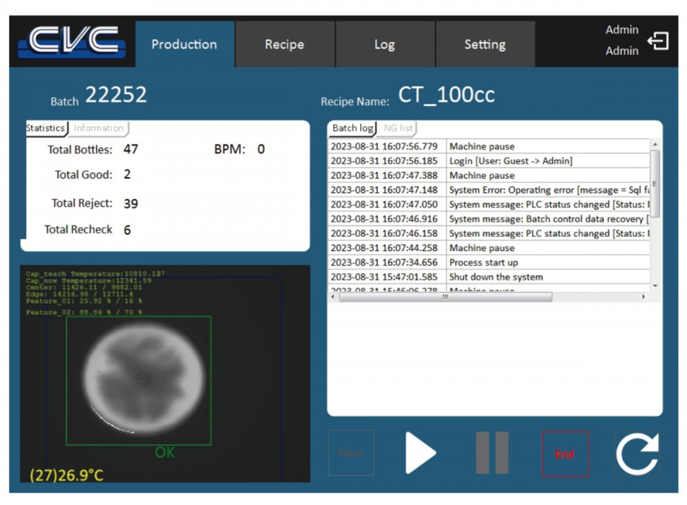 CVC FIS20 Series Thermal image inspection system, adopting the latest thermal imaging technology along with a thermal image camera, is able to perform multi-point temperature checks and converts the data into thermal images for aluminum foil sealing inspection.
