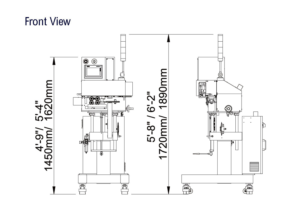 he dimensions shown are for standard machine. The conveyor can be extended: the length may vary based on selected options. This machine can run independently or be integrated into an automated packaging line. All CVC equipment is covered by a one-year par ts warranty. Full Warranty details are included in our equipment proposals or can be found on our website.