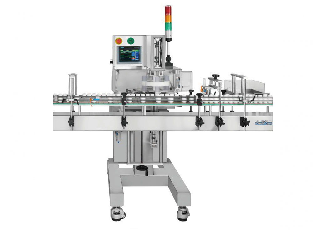 The CVC 1117 Series of Cotton Inserter is designed to insert polyester, rayon, or cotton coil into containers at speeds up to up to 80 bottles per minute. The CVC 1117 is Siemens PLC driven and Servo Motor controlled. Options include tower lamp, missing cotton in bottle detection, reject, and reject verification. The cotton piece length can be set from 70mm to 150mm. It can place from 1-10 inserts per bottles.