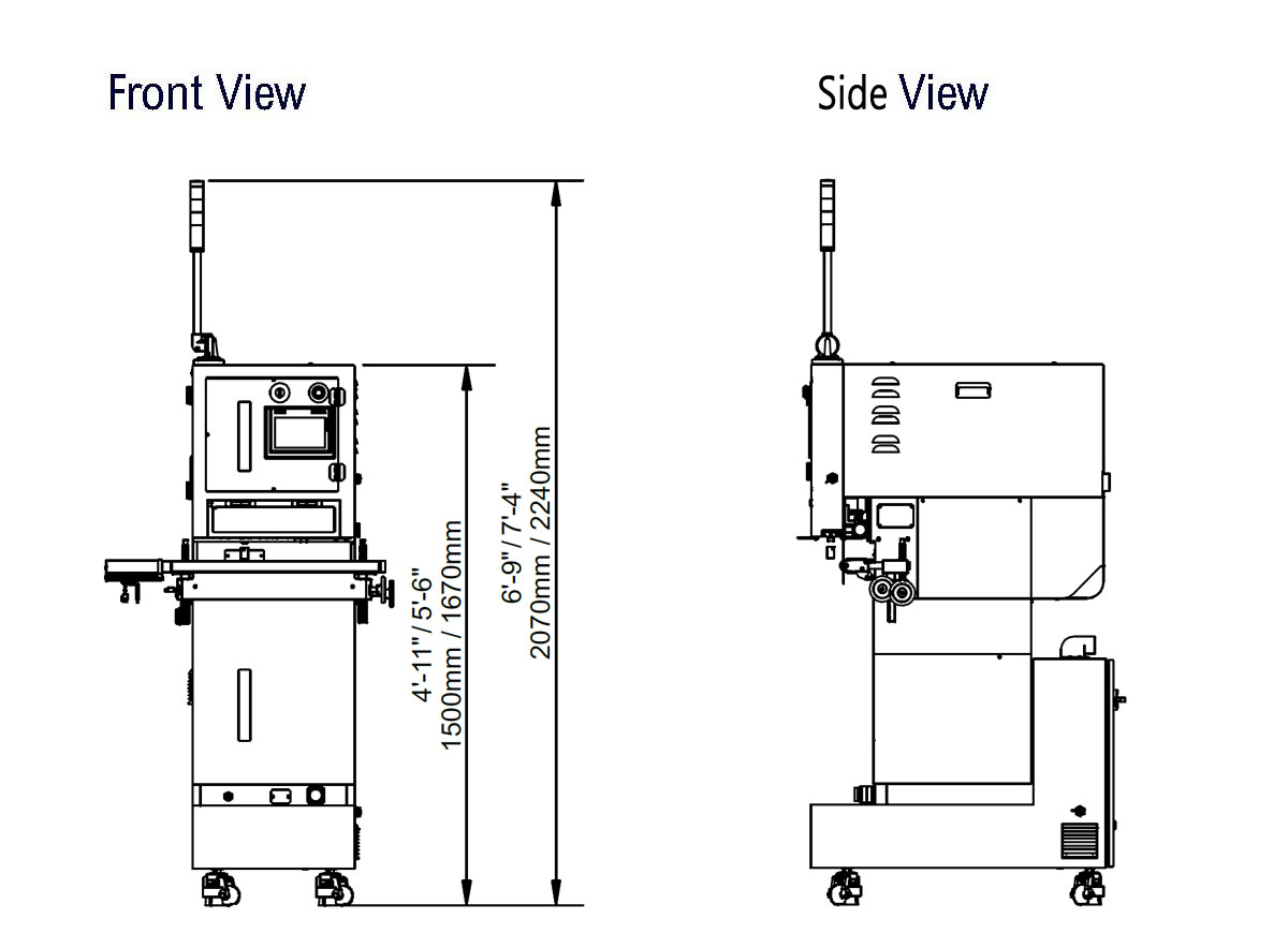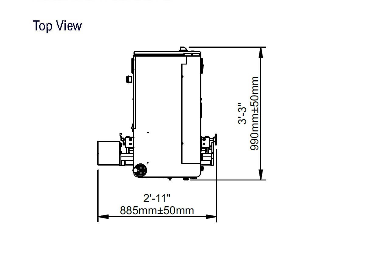The dimensions shown are for standard machine. The conveyor can be extended: the length may vary based on selected options. This machine can run independently or be integrated into an automated packaging line. All CVC equipment is covered by a one-year par ts warranty. Full Warranty details are included in our equipment proposals or can be found on our website.