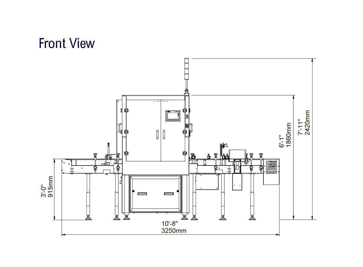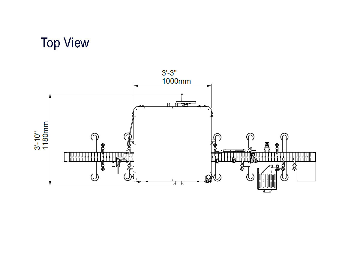 The dimensions shown are for standard machine. The conveyor can be extended: the length may vary based on selected options. This machine can run independently or be integrated into an automated packaging line. All CVC equipment is covered by a one-year par ts warranty. Full Warranty details are included in our equipment proposals or can be found on our website