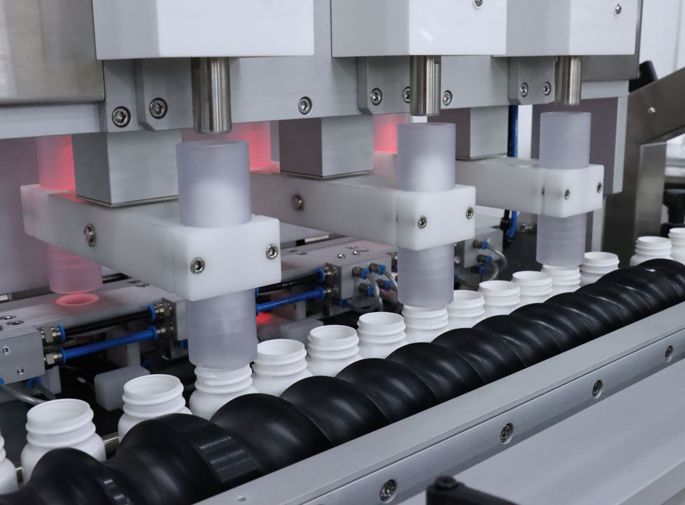 The CVC 1117H of Cotton Inserter is designed to insert polyester, rayon, or cotton coil into containers at speeds up to up to 200-210 bottles per minute. The CVC 1117H is Siemens PLC controlled and Servo Motor driven. Options include tower lamp, missing cotton in bottle detection, reject, and reject verification. The cotton piece length can be set from 60mm to 150mm.