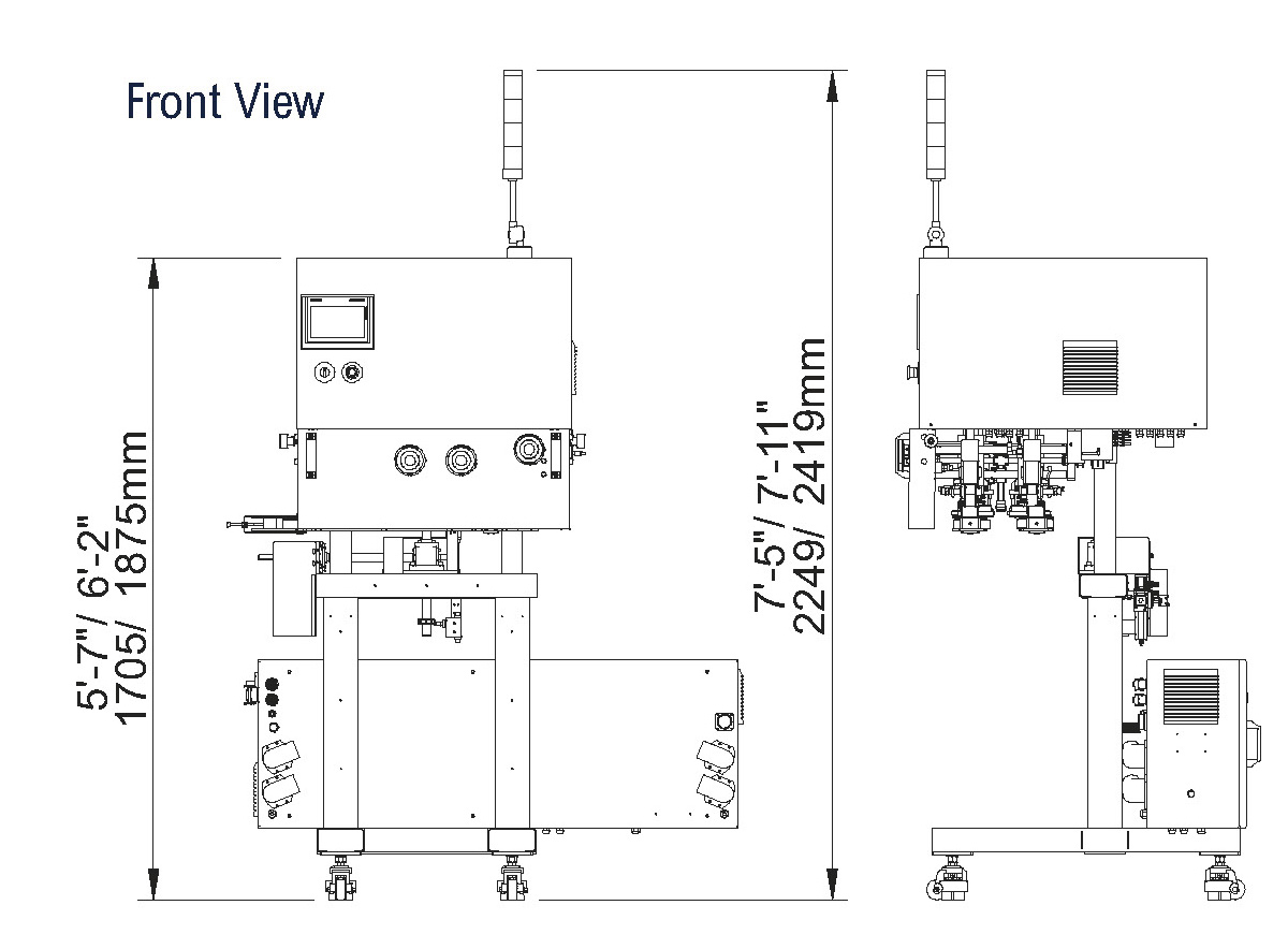 The dimensions shown are for standard machine. The conveyor can be extended: the length may var y based on selected options. This machine can run independently or be integrated into an automated packaging line. All CVC equipment is covered by a one-year parts warranty. Full Warranty details are included in our equipment proposals or can be found on our website.