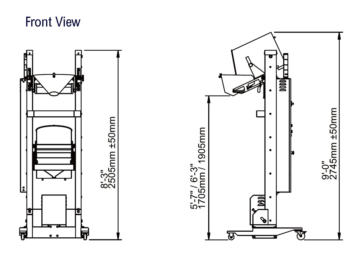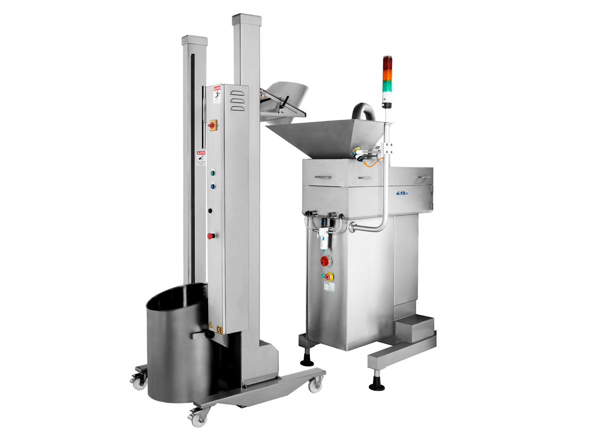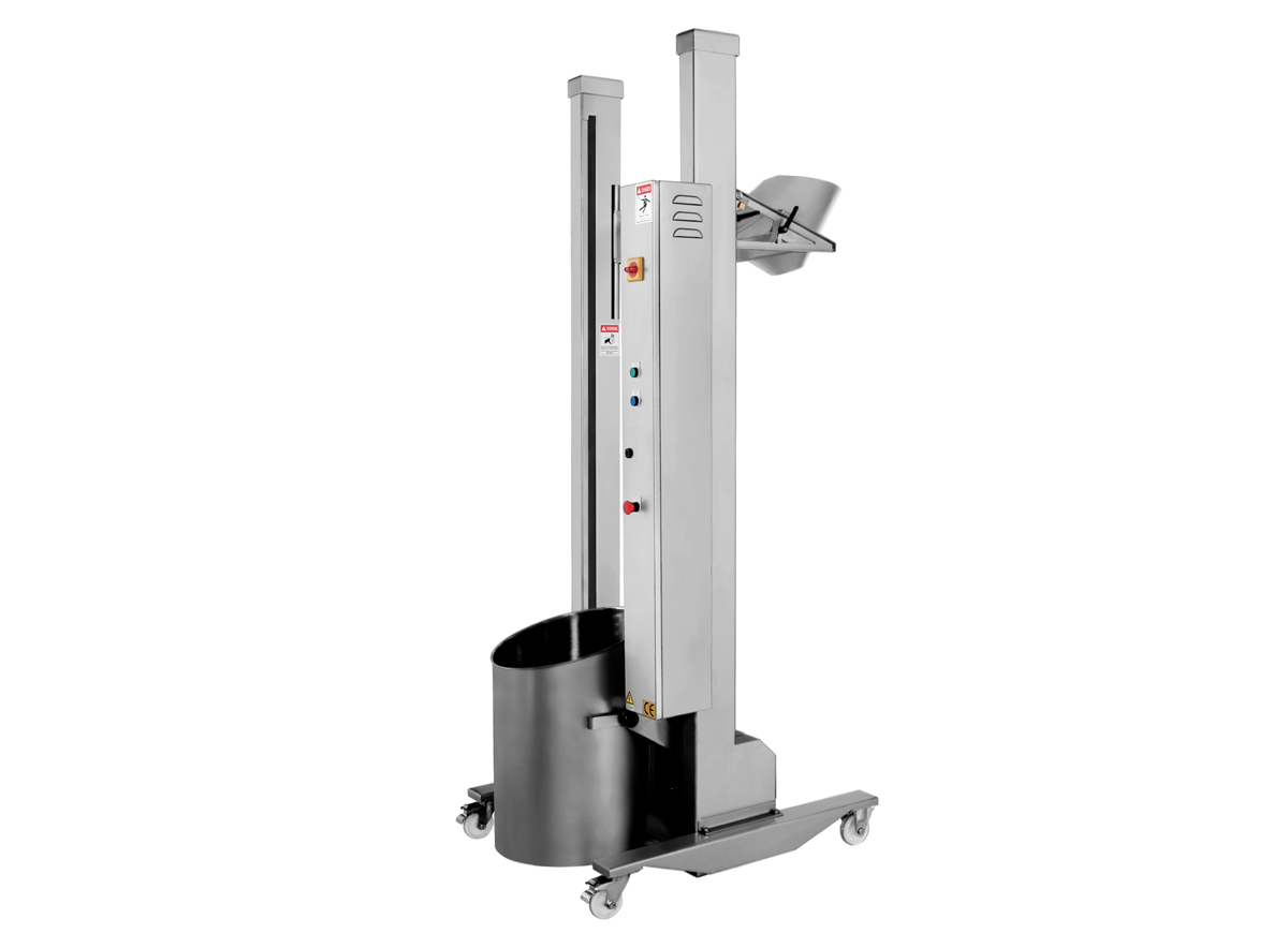 Height adjustment is electrically controlled with auto lock; hopper is hooked when power cuts.