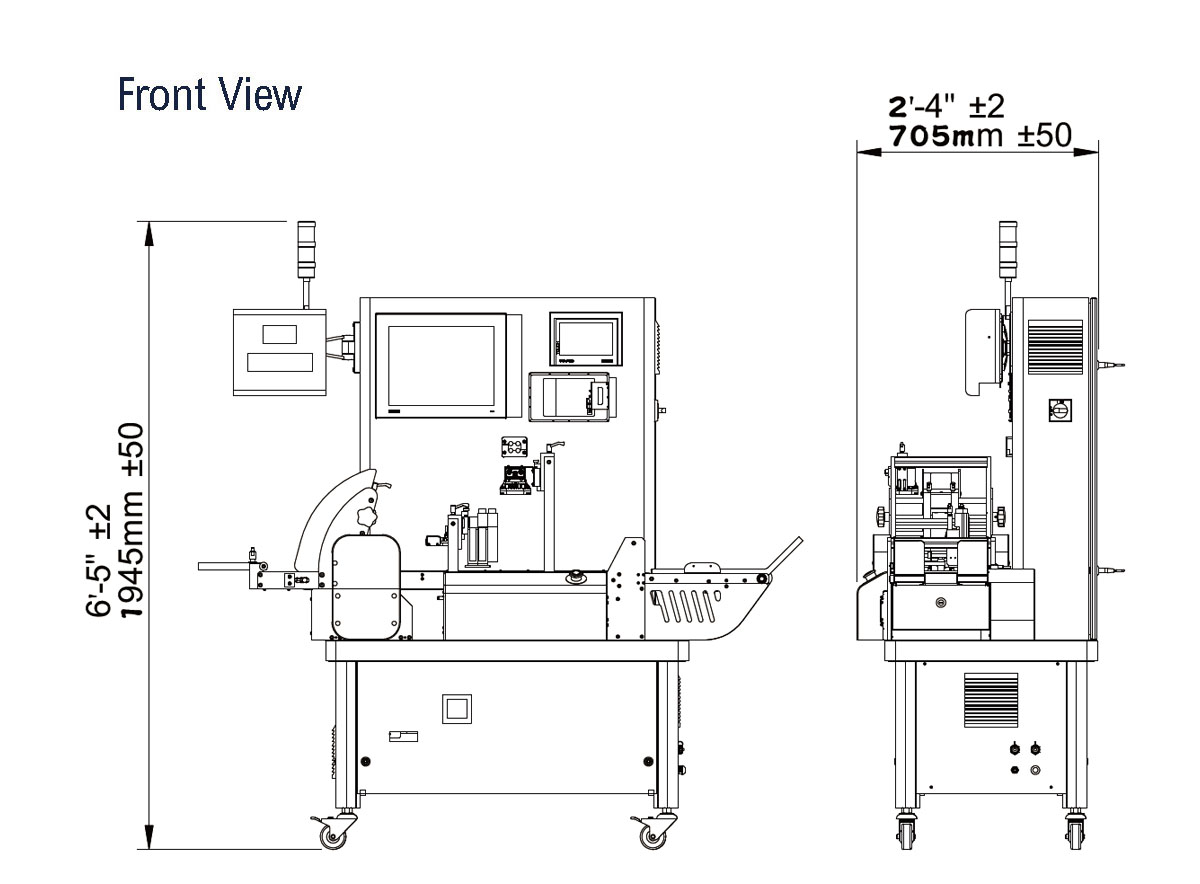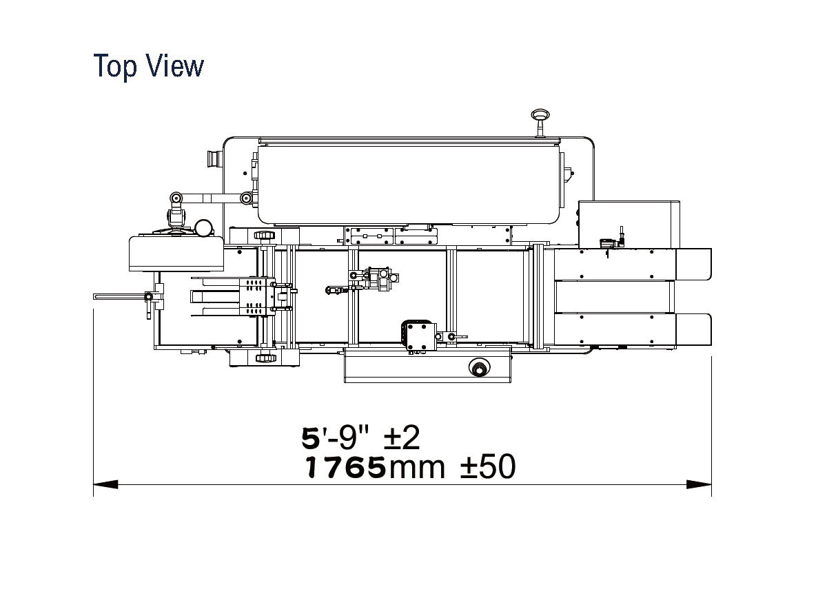 The dimensions shown are for standard machine. The conveyor can be extended: the length may var y based on selected options. This machine can run independently or be integrated into an automated packaging line. All CVC equipment is covered by a one-year parts warranty. Full Warranty details are included in our equipment proposals or can be found on our website.